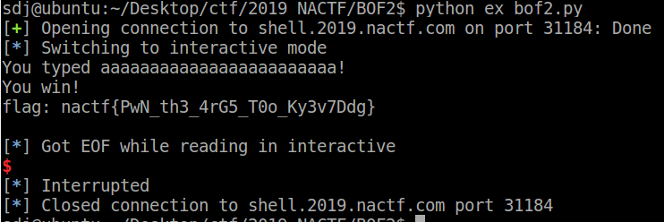 | NACTF 2019 - BufferOverflow #0 (0) | 2019.09.23 |