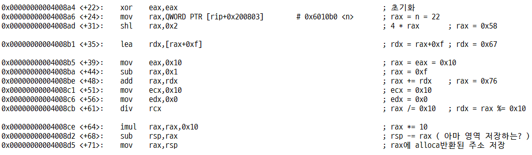 어셈블리로 본 alloca(4 * n)을 하는 과정