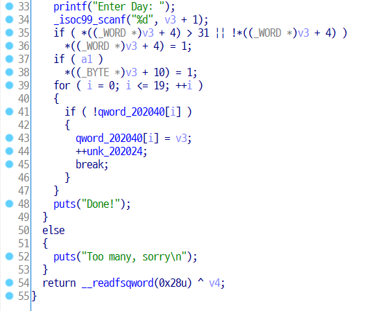 ++unk_202024를 통해서 할당한 횟수를 저장하는데 6번 이하까지 가능하므로 총 7번 할당이 가능하다.