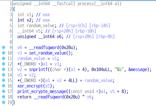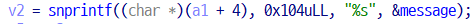 그 다음 snprintf로 *(a1+4)위치에 message를 붙여 넣는다.